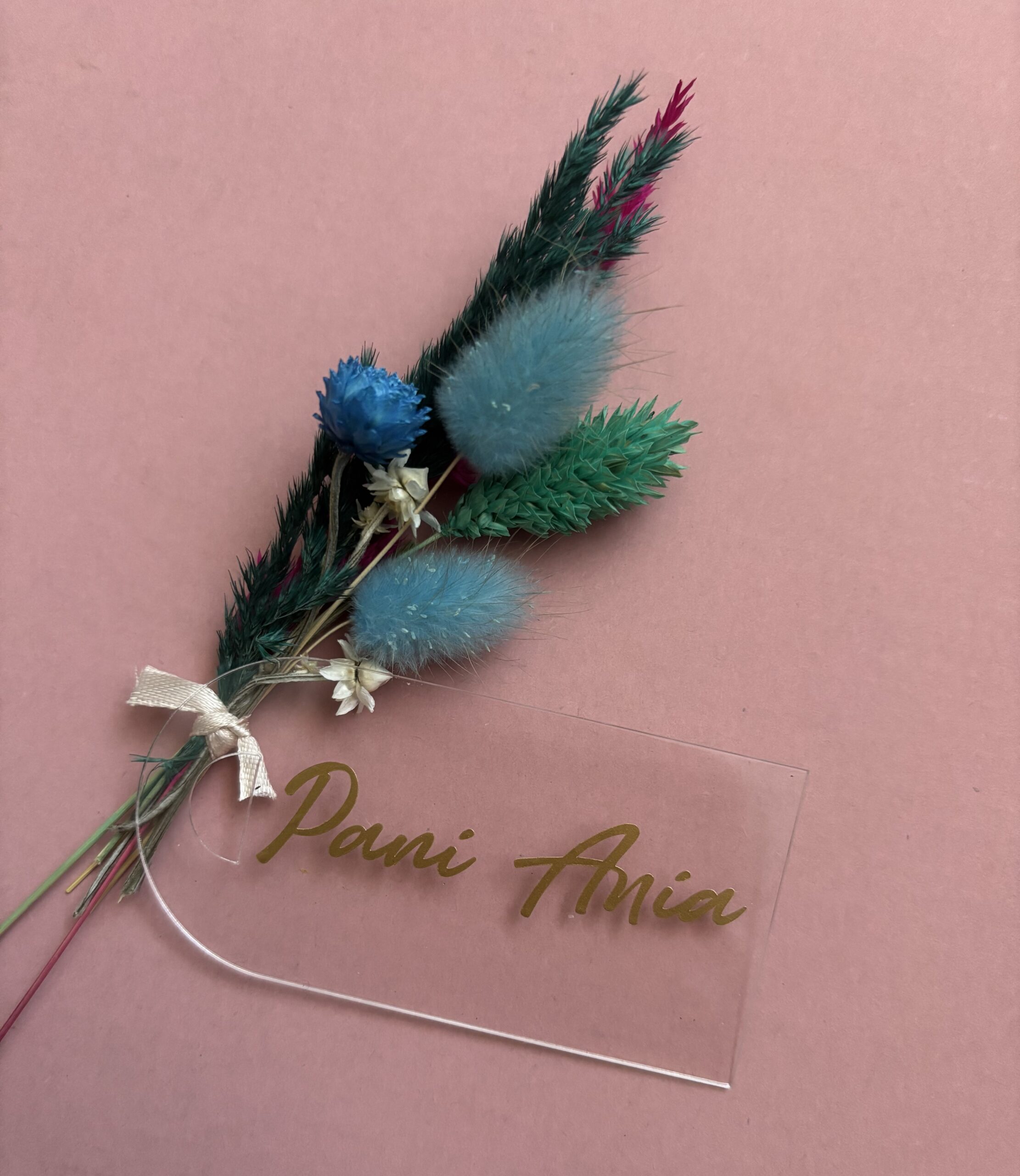 - personalizowana etykieta – proszę podać nr przy zakupie lub akrylowa winietka z imieniem obdarowanej osoby