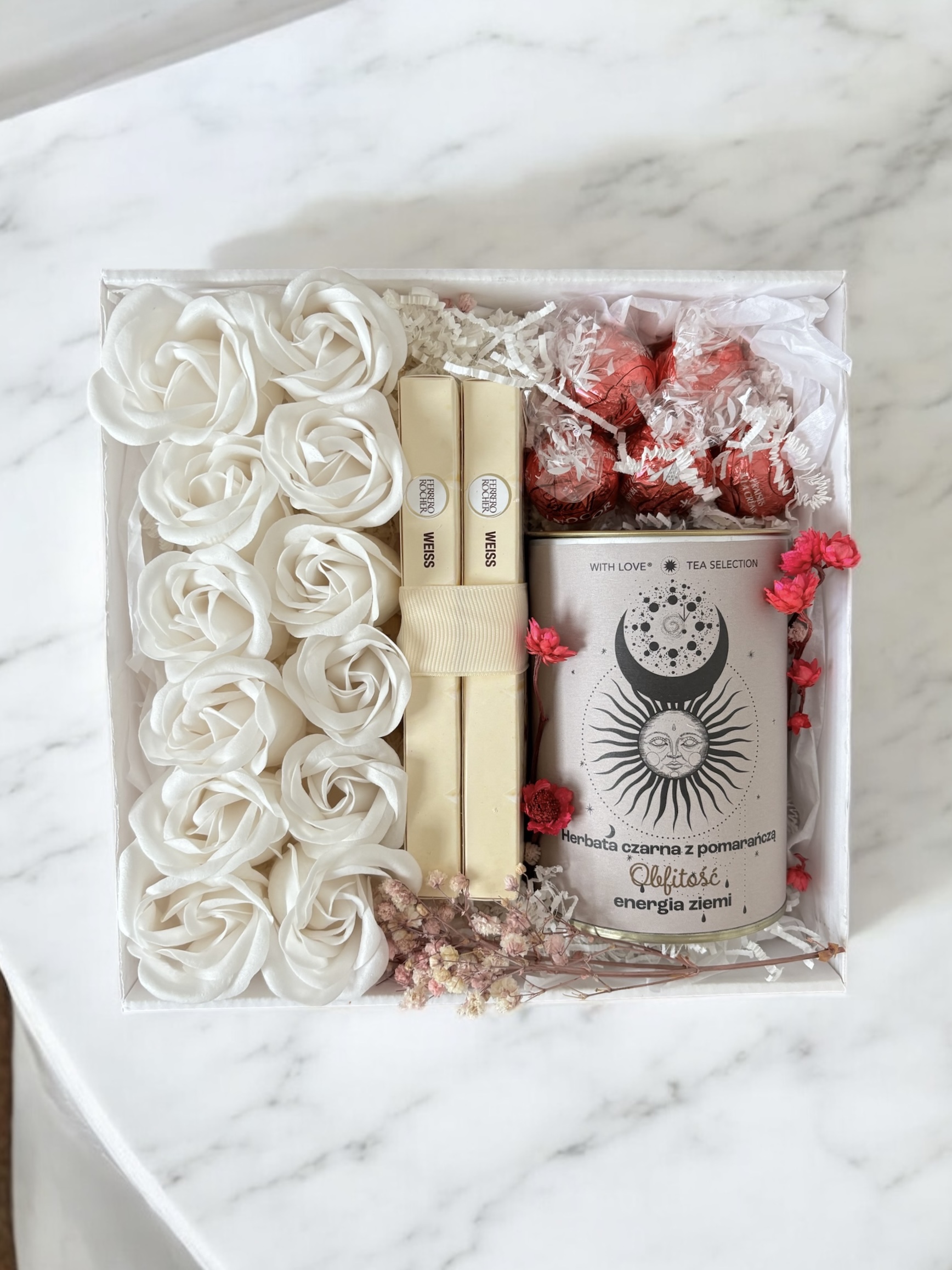 - mydlane róże – symbol wdzięczności, nadaje niesamowitego zapachu całemu zestawowi