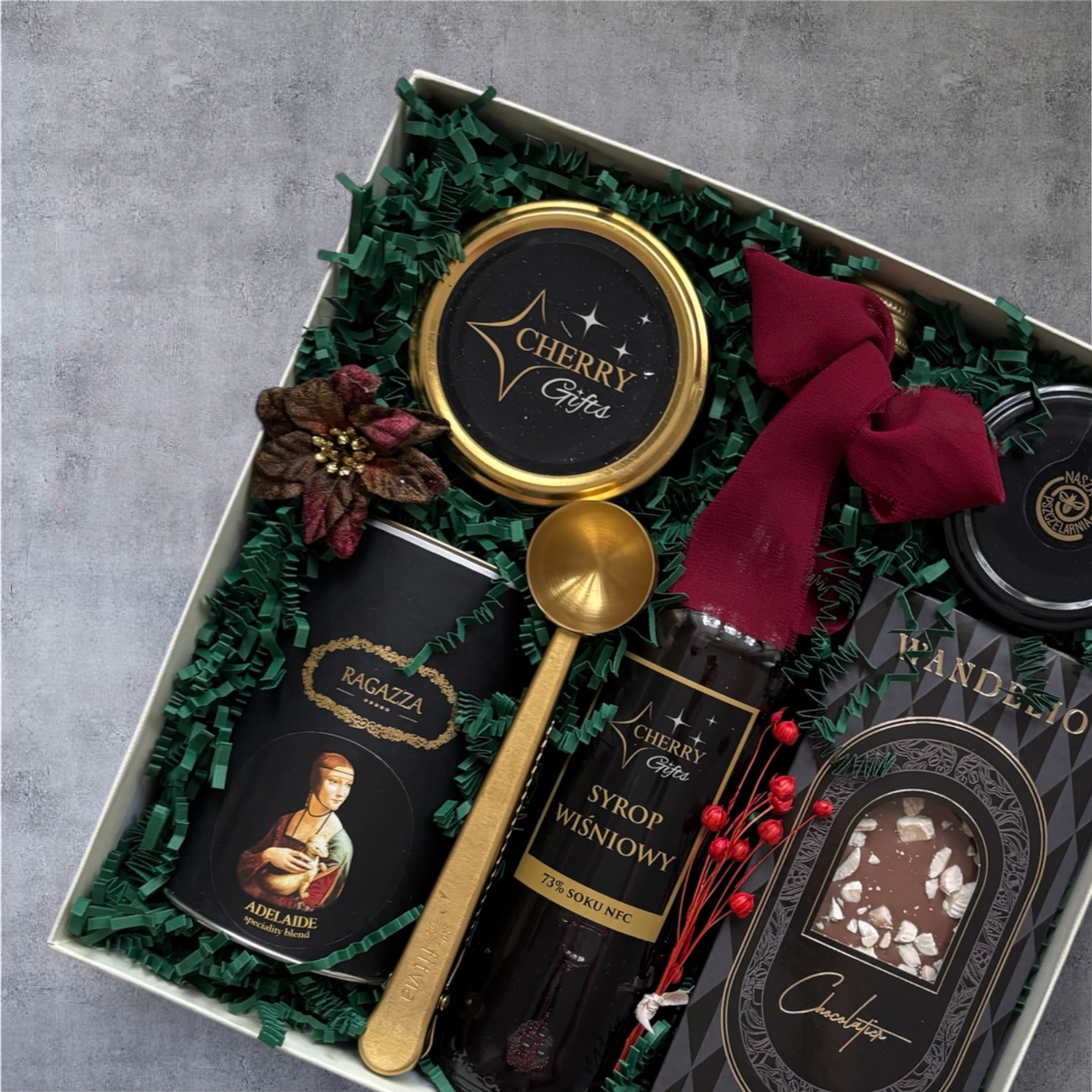 - syrop wiśniowy Cherry Gift – połączenie naturalnego smaku wiśni z subtelną słodyczą