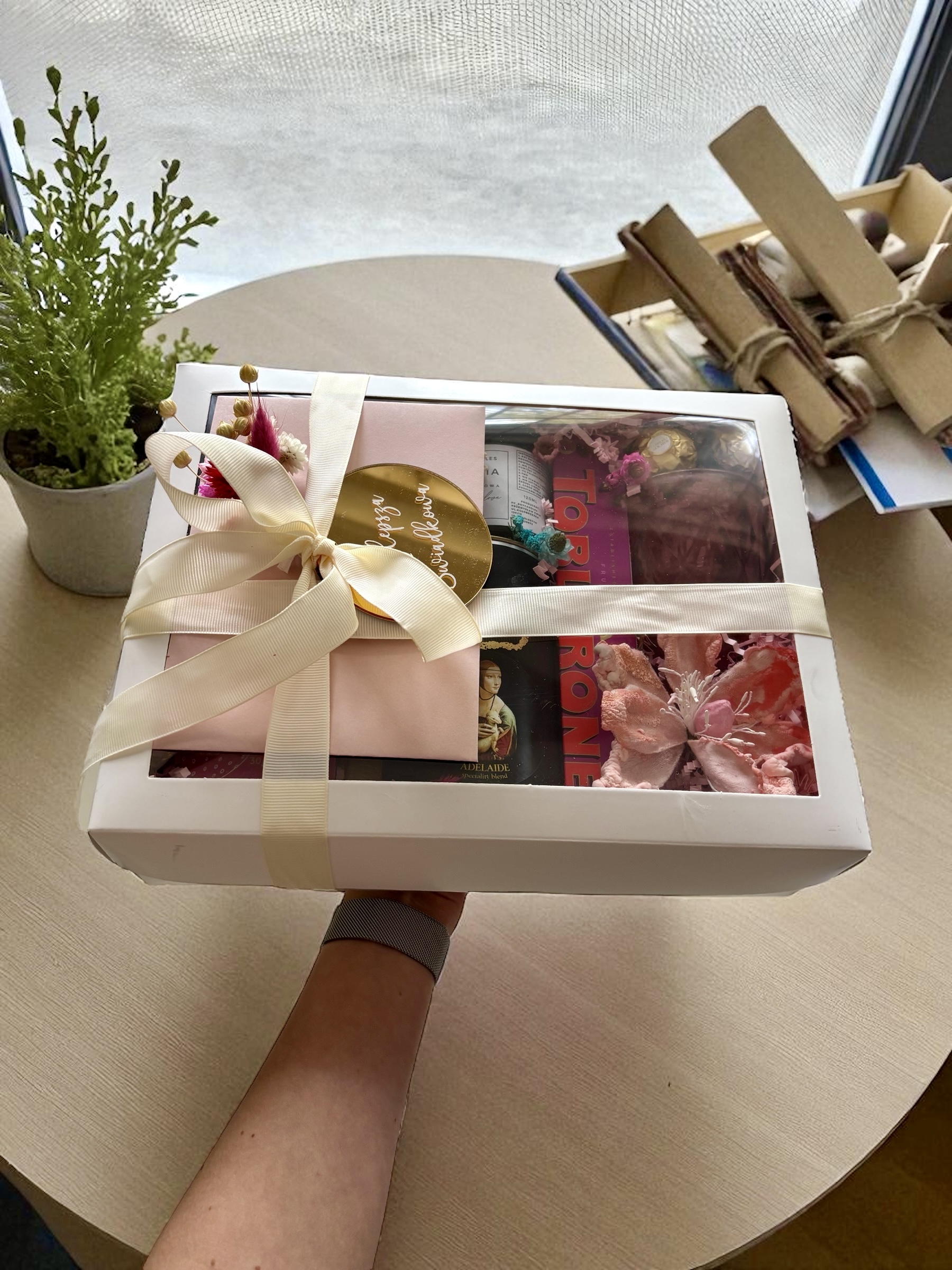 - pudełko z okienkiem w kolorze białym o wymiarach 30x20cm